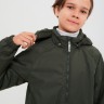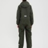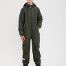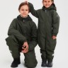Демисезонный комбинезон зелёного цвета выполнен из мембранного водоотталкивающего материала, защищающего от дождя, мокрого снега и ветра. Застёгивается на молнию спереди.